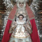 Así amanecía hoy la Virgen, entronada de nuevo en su Capilla tras los cultos de septiembre. Para esta ocasión, el equipo de Priostía y cuerpo de camareras de la Virgen han decidido ataviarla con saya blanca pintada en oro y diversos colores, saya que estrenase la virgen la pasada navidad y pintada por D. Juan Manuel González; y manto de terciopelo rojo, manto con gran carácter histórico por tratarse del primer manto de salida de la Santísima Virgen.
